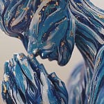 She stood before me with hair made of blue-green moss, thick at the crown and soft at the edges. Teal, deep green, shadow-blue—every color held a little moisture, a little hush. It rose around her he…