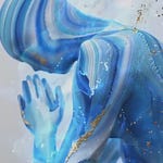 She stood before me with hair made of blue-green moss, thick at the crown and soft at the edges. Teal, deep green, shadow-blue—every color held a little moisture, a little hush. It rose around her he…
