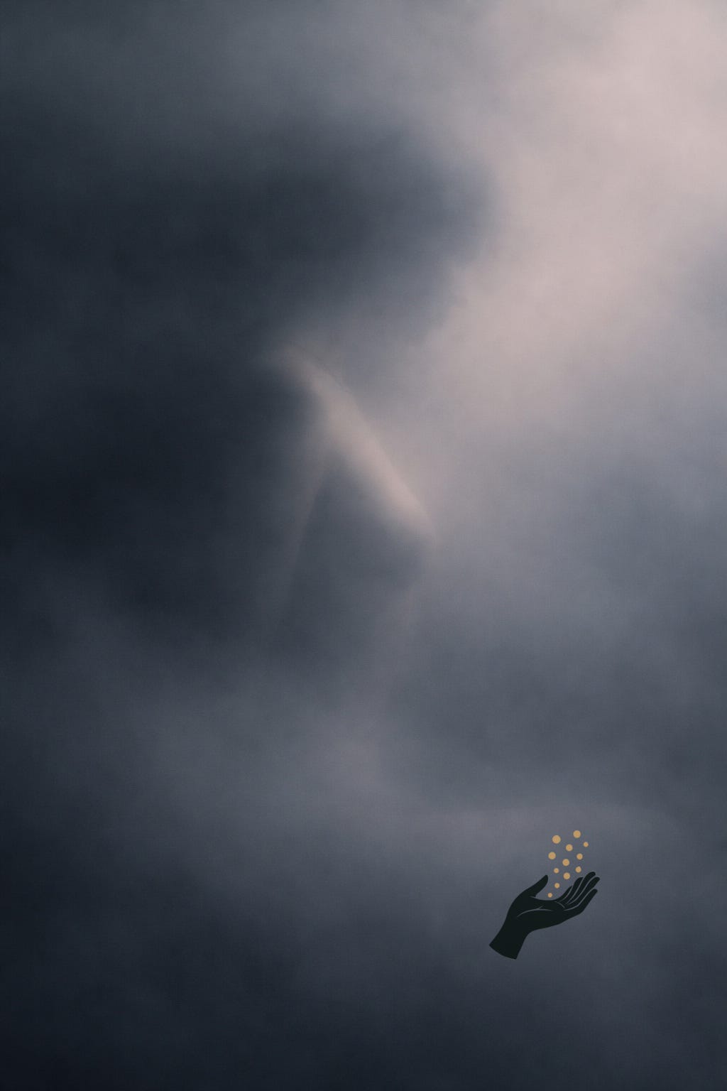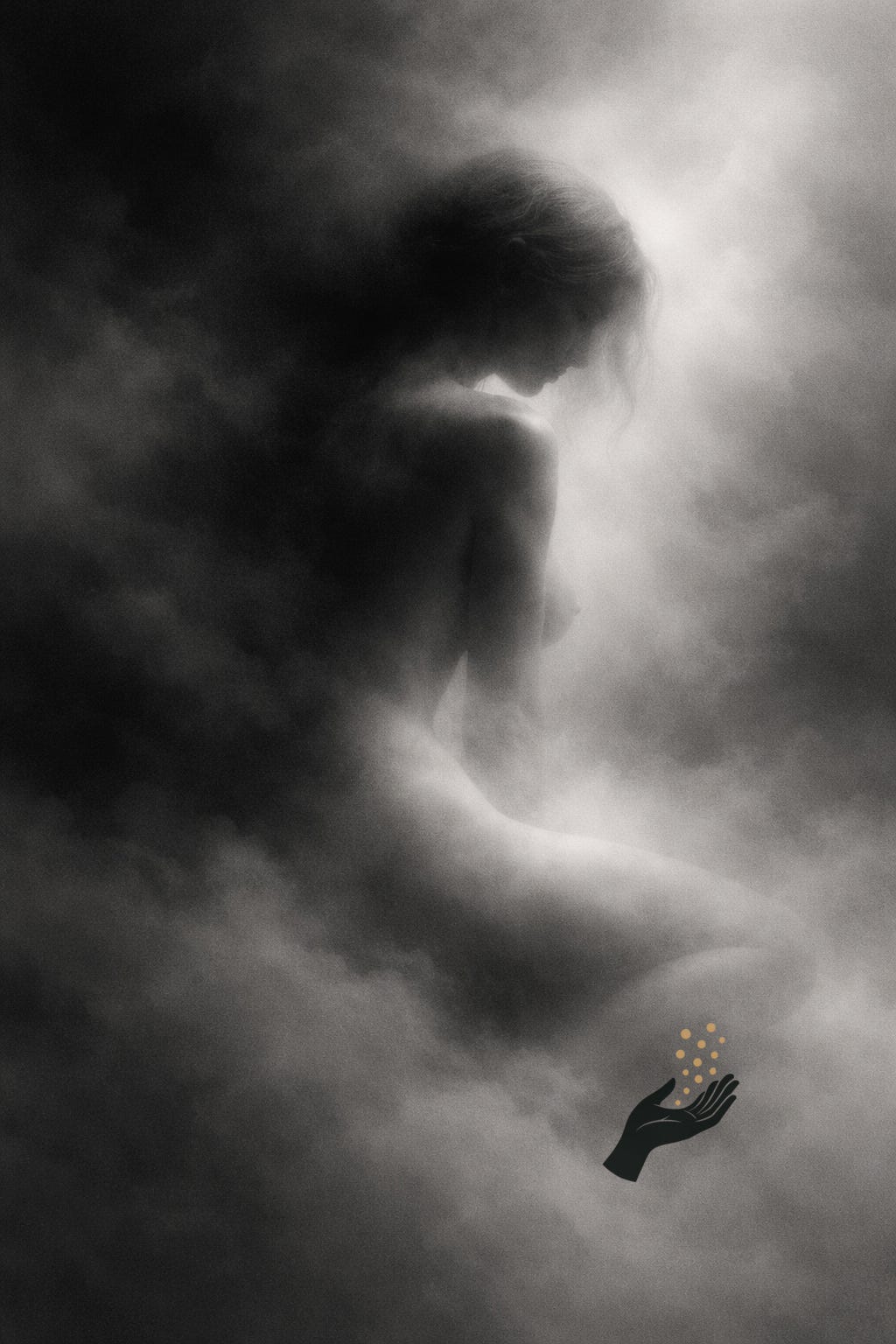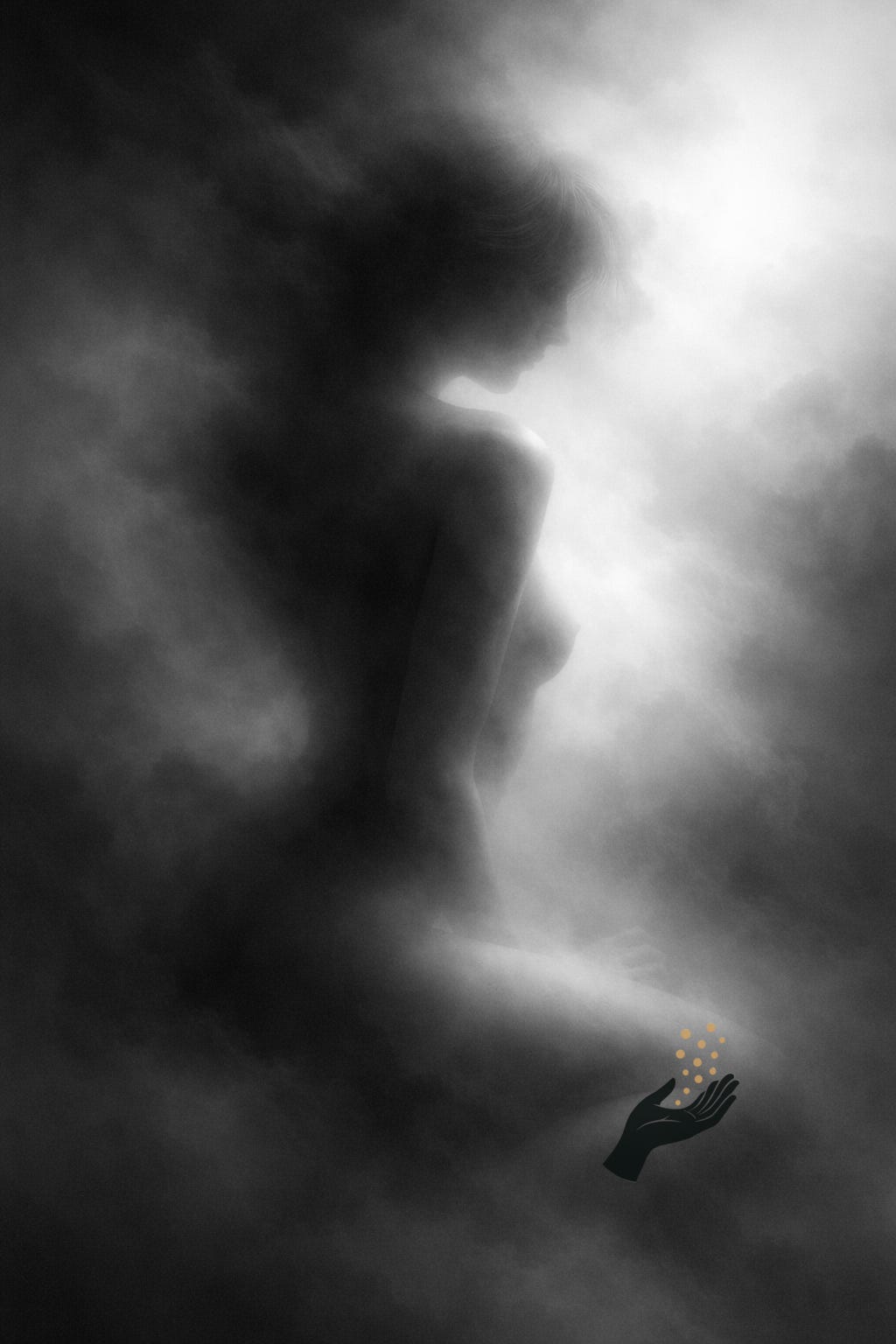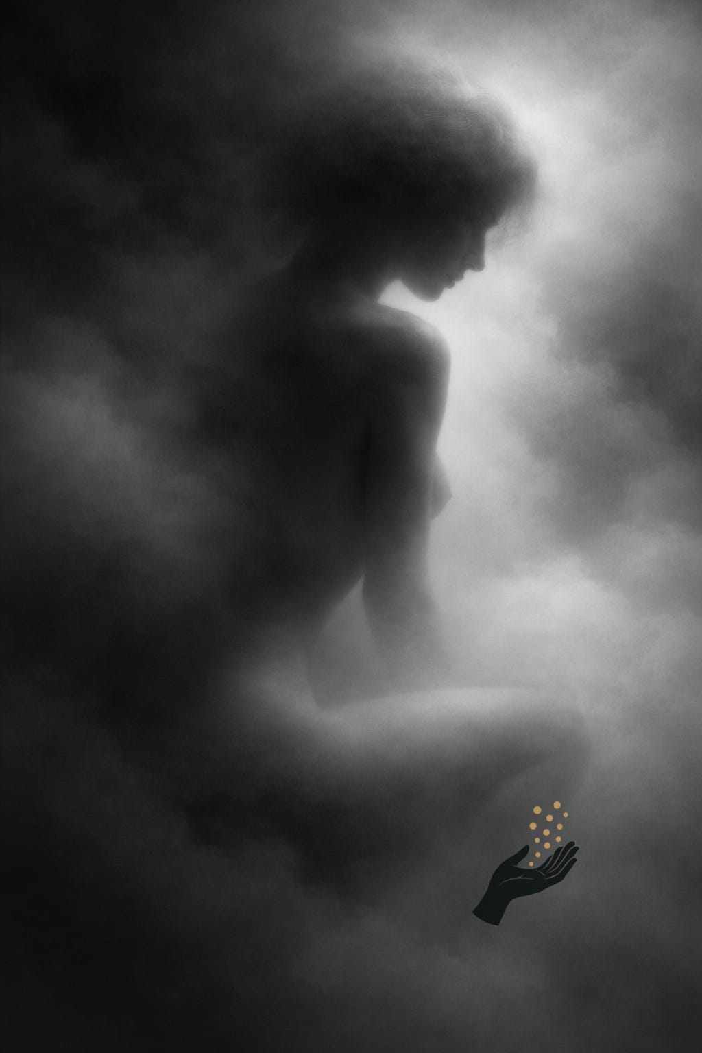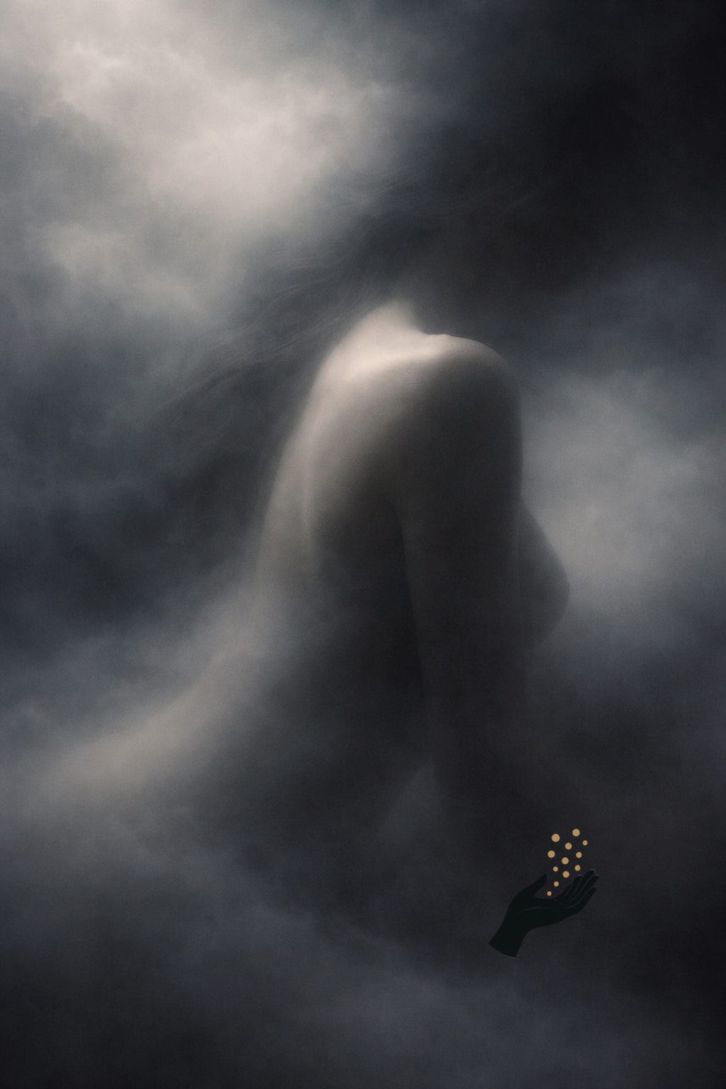 Presence forming in dense gray atmosphere, seen from the side. An impression from a sequence received at the threshold of sleep.