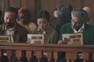 Stills studies from Reels 07–11. A gallery of visual studies extracted from a fictional Newsreel. Twelve stills observe how authority installs itself…