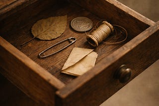 Stomari | Process & Drafts. A practice of leaving small provisions for the self who comes after—a coin, a leaf, a stitch. A poem about continuity, quiet…